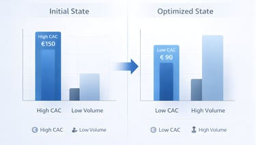 La réduction du CAC libère des capacités d'investissement. Avec le même budget, vous pouvez générer 40% à 60% de leads supplémentaires. Mais surtout, vous pouvez réinvestir les économies réalisées pour accélérer encore l'acquisition. Cette dynamique vertueuse crée un effet de levier exponentiel : chaque euro économisé produit deux euros de valeur supplémentaire lorsqu'il est réinvesti intelligemment.