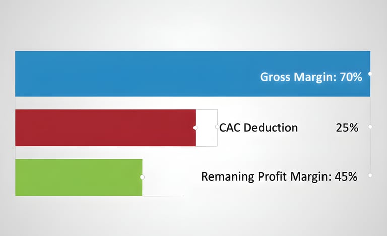 Lorsque le CAC atteint 150€, il faut que la marge brute par client soit suffisamment élevée pour absorber ce coût. Prenons un exemple concret : si votre panier moyen est de 800€ avec une marge brute de 40%, vous générez 320€ de marge. Après déduction du CAC de 150€, il reste 170€. Sur ce montant, vous devez encore financer les coûts de service client, de livraison, de support, et de fidélisation. Le résultat : une rentabilité nette par client qui peut tomber sous 10%, voire devenir négative si le taux de churn est élevé.
